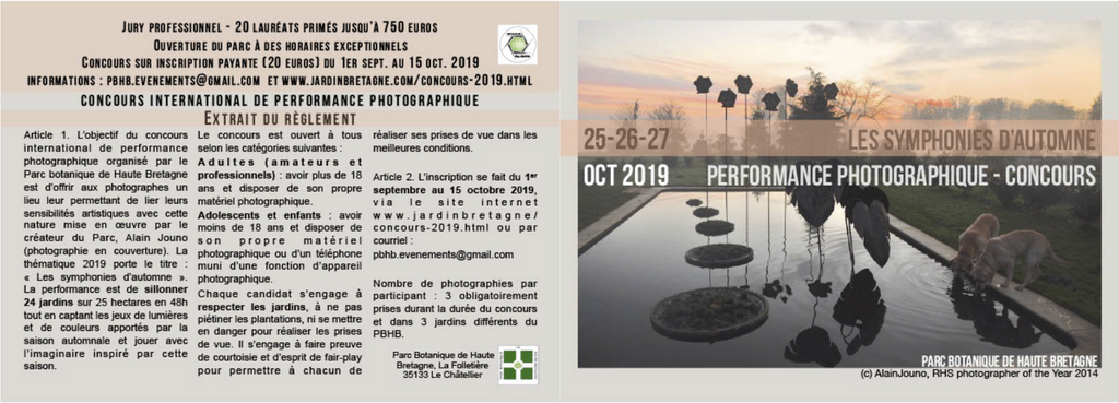 INSCRIPTION au CONCOURS INTERNATIONAL DE PERFORMANCE PHOTOGRAPHIQUE des 25, 26 et 27 octobre 2019 au Parc botanique de Haute Bretagne -