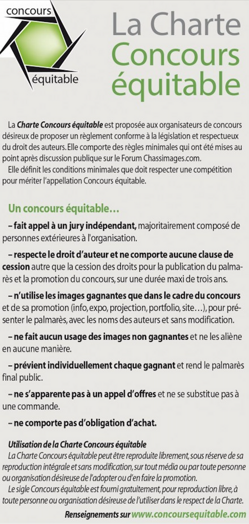 Dans cette optique, le PBHB tient à garantir de bonnes conditions aux photographes en se conformant à la charte des concours de photographie équitable dont voici les liens : http://www.concoursequitable.com/ et https://www.upp.photo/fr/page/547).