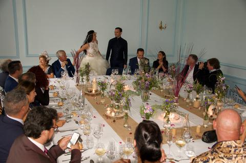 Pour les mariages : Le tarif est de 21,00€ par personne. Pour les buffets servis debout, la capacité d’accueil des salons est de 150 personnes. Pour des réceptions de plus de 60 personnes, un chapiteau peut être installé sur la pelouse. Sur demande, un devis sera établi.